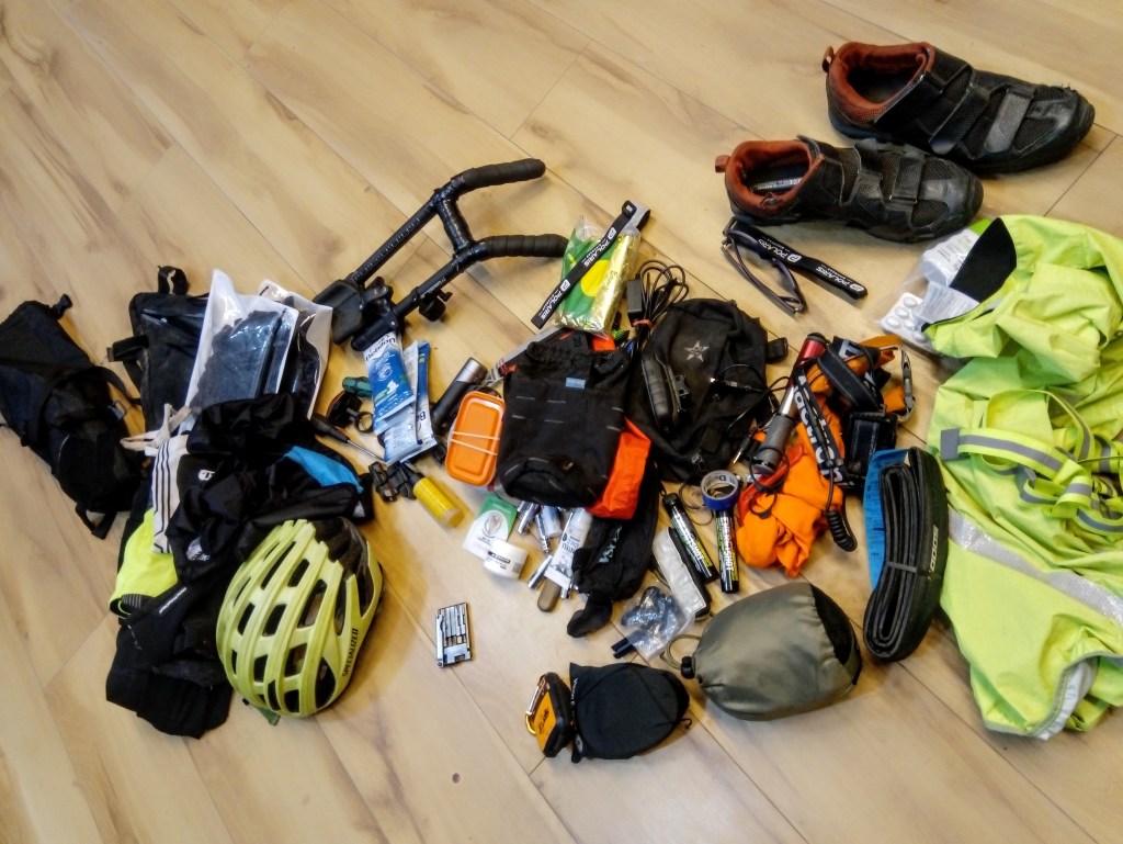 – Random rain jacket, knee warmers, thermal top, light gloves and TCRNo5 Musette