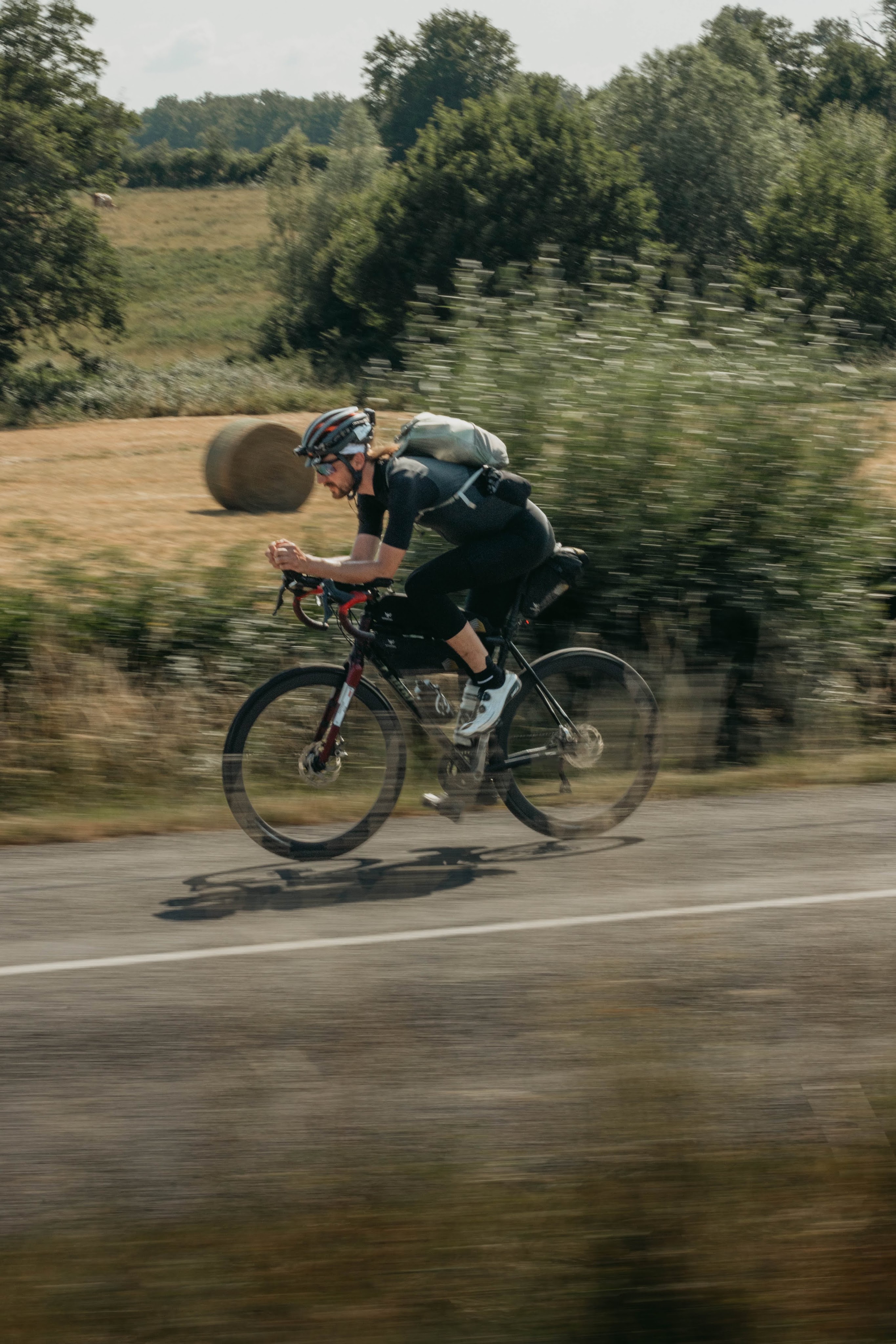 The plan for the next kilometers was pretty simple. Don’t stop, until my resupply point, which was on kilometer 1030, a Carrefour shop in Nevers. Being there only five minutes before the closing time, made me do my shopping quickly. I dumped everything into my backpack and as there was no rubbish bin around the shop, I couldn’t distribute all the shopping in my frame and top tube bags, which were full of rubbish from already eaten food. I moved on to the final stage of the day, the CP2 with my Apidura backpack pretty full, actually pretty packed with food.