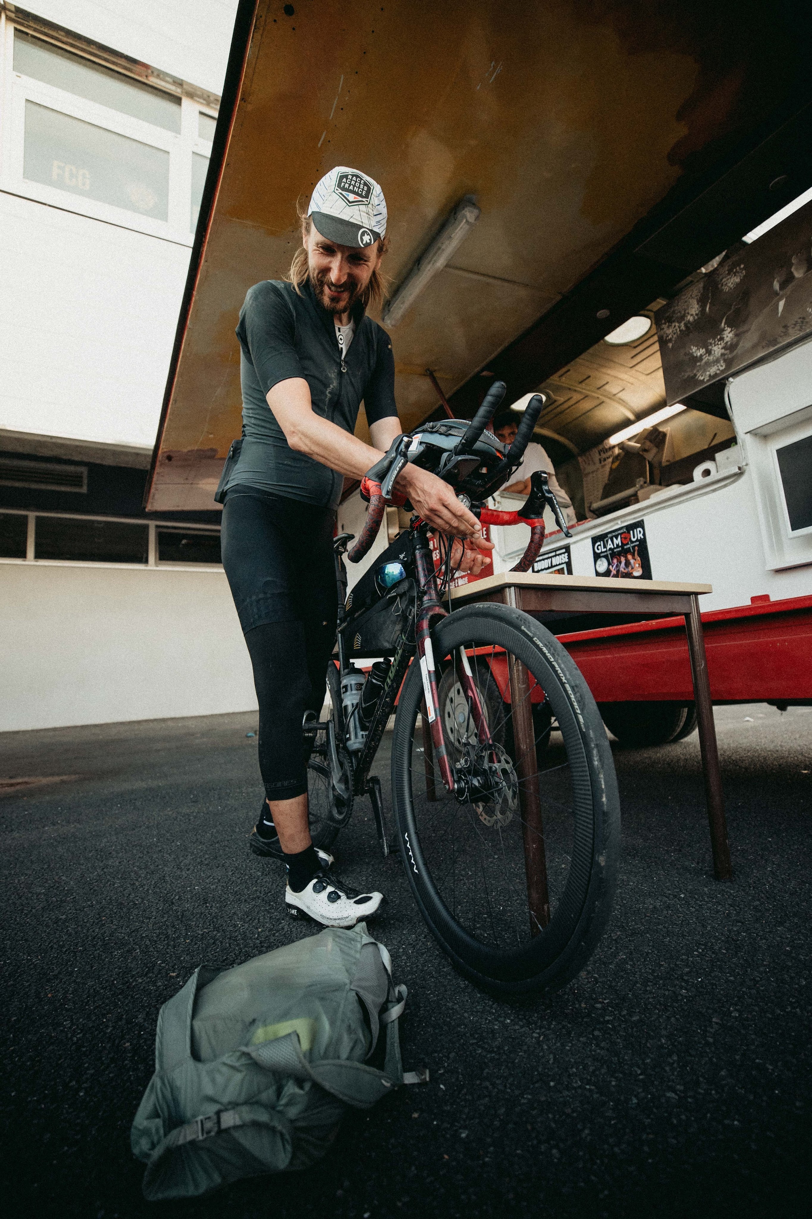 The morning came nice and it was pretty warm. I was wearing nothing but a jersey and arm warmers and the only thing I was thinking of at that stage was a place for a good quick morning coffee and a portion of porridge, that I was carrying with me from the start line. After about 220 kilometers from CP1 in La Ferté-Saint-Cyr, I found the little coffee place. Even if it was officially closed yet, I was still served a coffee, a tart, and a big glass of warm milk where I could finally make and consume my porridge. Lovely place and everything was easier from there.