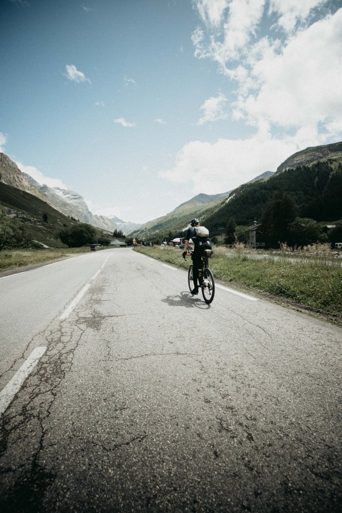 Big food and sleep, that was my first thought, and as I had to stop for four hours, it seems like the best plan. So I ate a lot of rice with chicken, and I probably spent too much time there enjoying myself, but it was so nice to have such great, normal food. After that, I went straight to B&B which I found while eating. There was a Carrefour close to the hotel, that was closing at 8 PM so I set my alarm for 7:30 PM with a plan for resupply just before setting off. I fell asleep like a baby and the alarm rang straight away. It took me a minute to realize what is happening. I wasn’t planning any hotel for this race, but yeah, after my mind started working again, I packed up and went straight to that Carrefour. I was surprised with a little anger as the lady working there decided to close 30 minutes earlier. She just did shake her head through the glass when I pointed to the opening hours shown on the door. It wasn’t nice and I had a whole night ahead of me and not much food. I moved on and was hoping to find something else on my way. There was a small pizza place where I stopped and I bought two margaritas. One I ate straight away, the second I asked for takeaway in an aluminum foil. It was going to be my resupply for the coming night and I was again pretty confident to continue my ride. When I passed the sign to Col du Mont Cenis, the memories from TCRno7 got stronger. The Road to Saint-Michel-de-Maurienne was well known already, and as it was still going down, I got there pretty quickly. I started the climb to Col du Télégraphe when the sun was setting, and I was really happy with my speed and progress climbing. The sleep I’ve done was felt and I was sure that I was going to make my personal best on this climb. In Valloire, I stopped for a quick coffee. Funny story, as the restaurant owner knew the race pretty well, and he even remembered The Transcontinental going through the city in 2019. We chatted for a second, he made me an extra sandwich for the road and I did continue my night climb to Col du Galibier.
