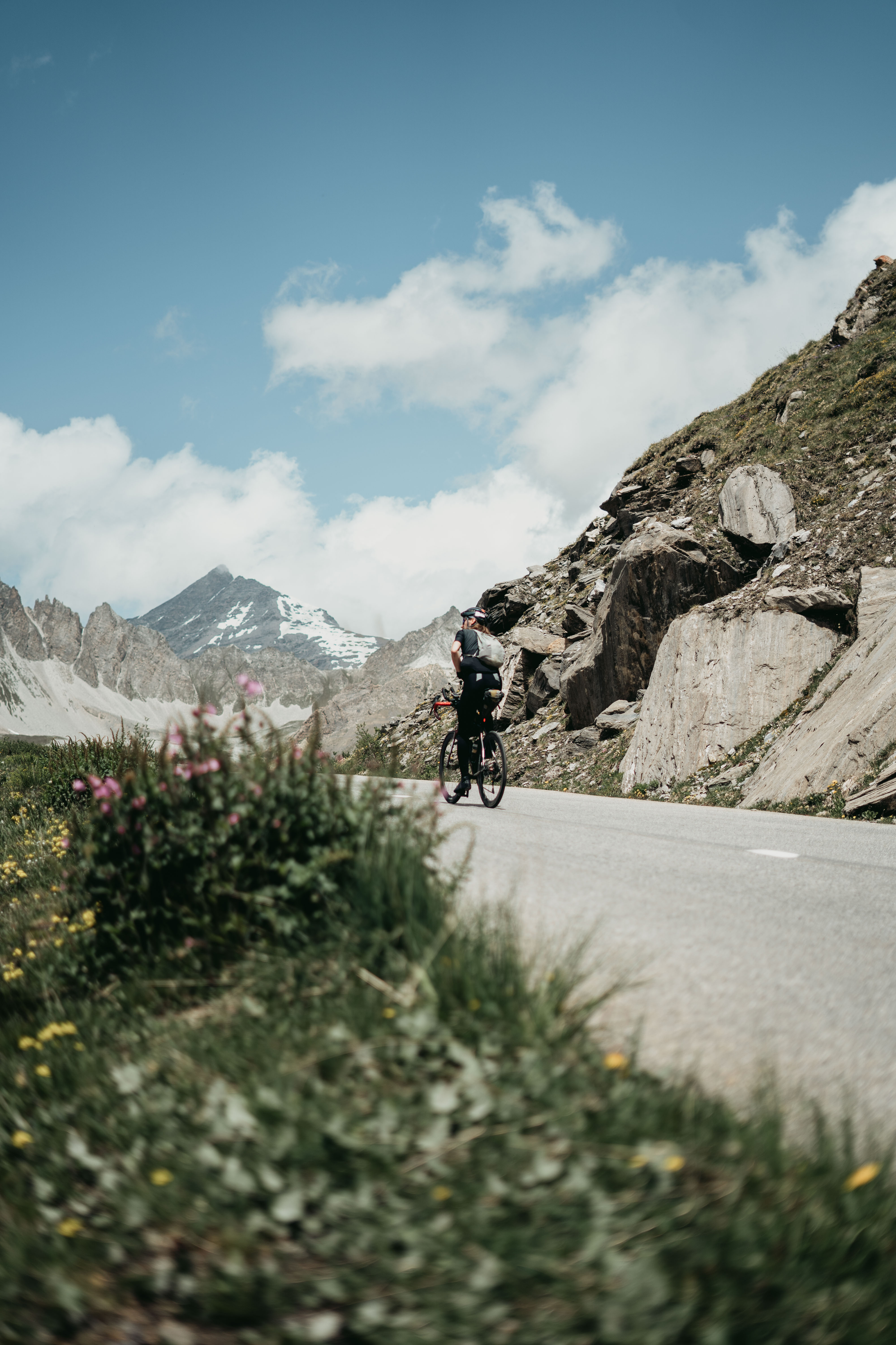 After another long descent, I arrived at the foot of the highest paved pass in the Alps. In the valley, the weather got a bit better. In Bourg-Saint-Maurice I stopped for a quick morning coffee and baguette, changed my layers for dry but still a bit cold weather, and pushed my way up, towards the long-awaited Col de l’Iseran.