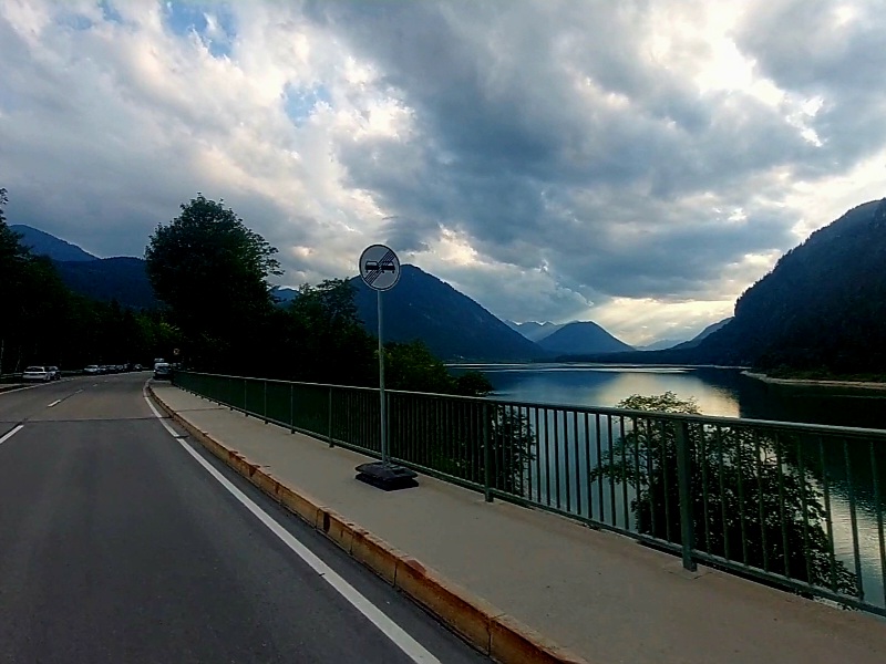I’ve booked a hotel in Imst, which was my reward, and supposed to be more than halfway through Austria, and wrote a message to the owners that I’ll be coming about 10 PM with my bike needed to be safely stored. As for my stops that day, I wanted to minimalize them as much as I could. I stopped twice, first in Mcdonald’s around München for a lot of veggie burgers, milkshakes, and coke, and later in a typical bavarian restaurant located in one of the towns just before the Alps. I had a strong coffee there and some more sweet drinks. After that, I was ready for the Sharnitz Pass, where I chose to cross into Tirol. Entering the Alps was as always super exciting, and it was also great to meet a few dot watchers on the way there.