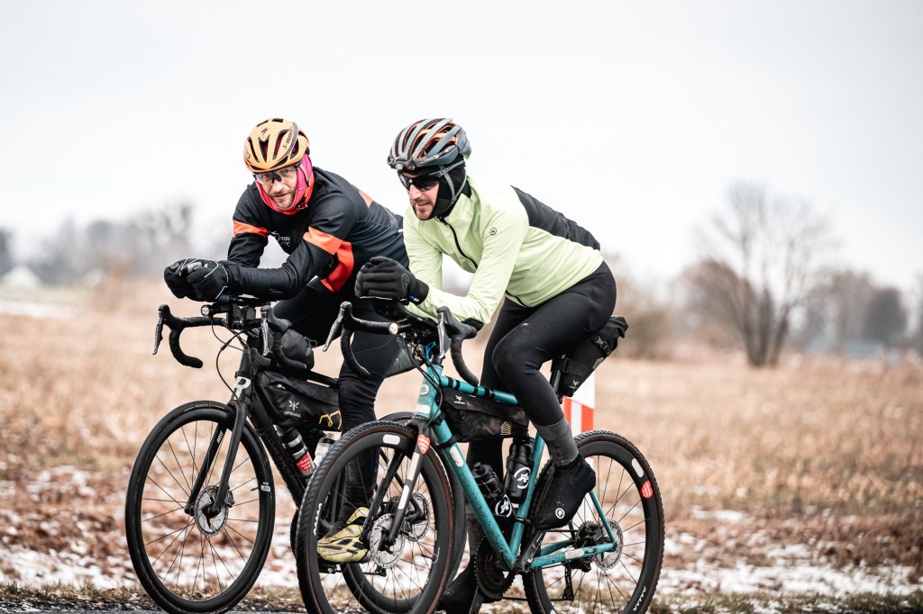 The section to Płock was tricky. On the one side, I enjoyed it, because there were many more rolling hills than before, and the ride was simply nice and not too boring. On the other side, we had a lot of sections with black ice and frosty snow on the road, and some short sections were simply dangerous. The wind changed its direction as well, and instead of a tailwind, we were now constantly frosted by cold side winds from the west. I remember laughing with Jędrzej about it and we couldn’t wait to reach the Vistula Valley were we supposed to change our riding direction from South to East.