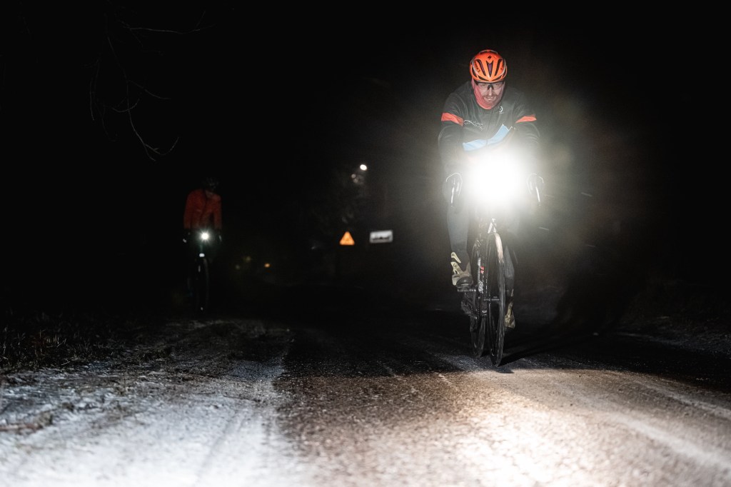 The rest of the night wasn’t easy at all. Not far after our first stop, over 120 km from the start, snowy sections started with tricky ice in places. Still, even with the snow on the road I preferred this from black ice. This was where we had to split because it wasn’t possible to ride next to each other anymore. Before midnight car driver stopped me. He opened his booth and asked if I wanted a tea. In a minute Jędrzej, Maciek and Asia caught up with me. It was our first trail angel and I was happy to see that our charity ride was actually visible.
