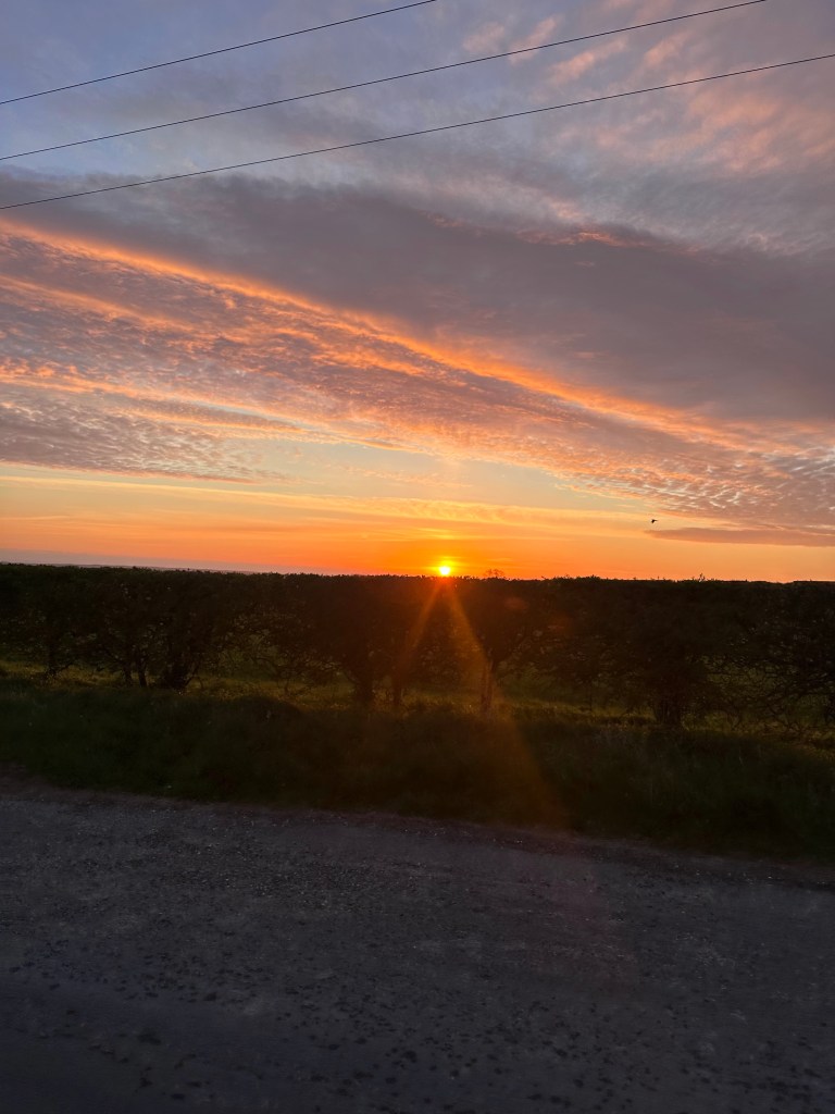 I rolled into Driffield around 4 a.m. – my next resupply. I was behind schedule, but I’d planned this well. There was a 24-hour shop just off the route. It was open. I bought a coffee, a sandwich, more drinks, and a big bag of M&MS. Swapped the drained AA batteries in my head torch. Then I pushed on. The night was long and slow. At least that’s what I felt, but then the sunrise came. Absolute magic. I fumbled with some weird gates at Carr House Farm near Eastfield, laughing to myself. Charging through private farmland at sunrise is not something I’m used to, but in the UK, with public rights of way, it’s allowed. And it made the whole thing feel like a weird, muddy fairy tale.