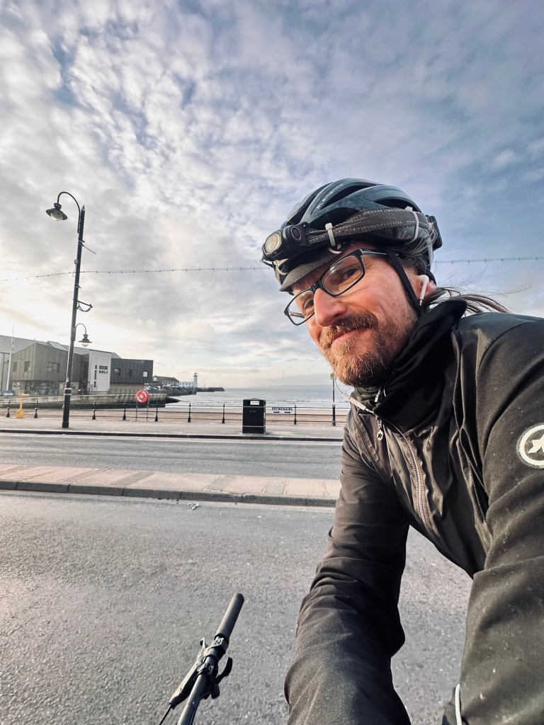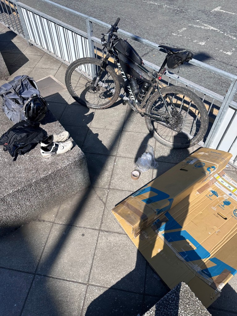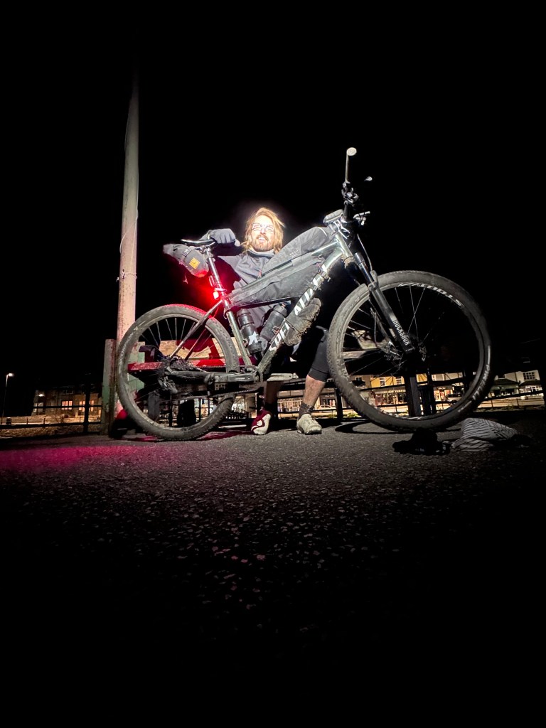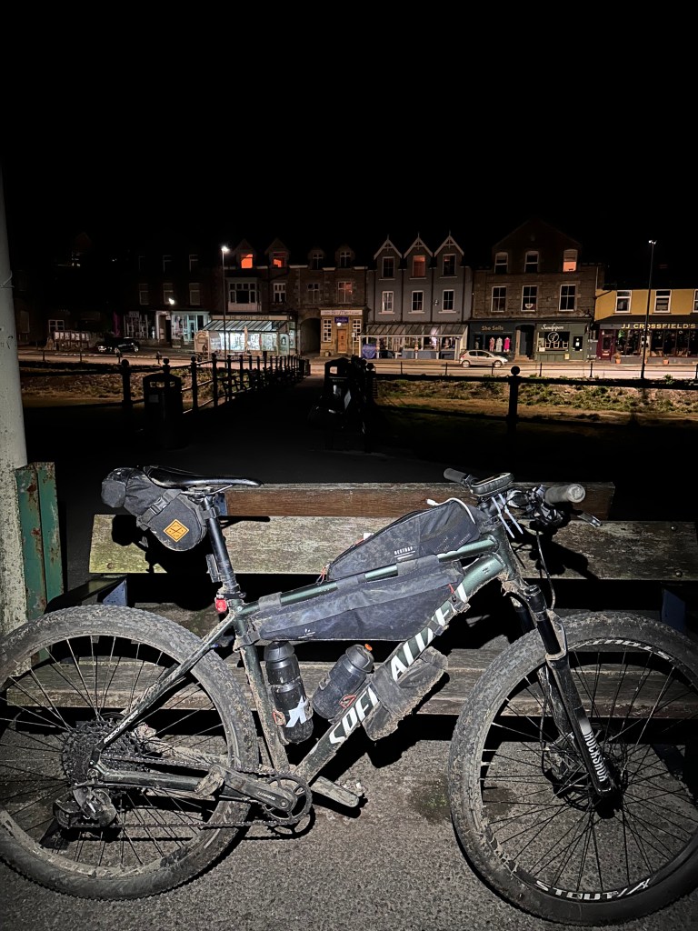 I thought of the ride. Of Mike Hall. Of my family back home. I got cold. That snapped me out of it. I hadn’t booked anything. No camp setup with me. Nothing. So I rode up to Frank’s garden – one of the organisers – where he’d left my backpack and bike box. Yes, with a little help from other people, I did arrange all that before the race. Grabbed my stuff, rode back to the pier, pulled on warm clothes and my woolly hat, and waited on the bench until morning. Greeted a few riders as they rolled in. We laughed, chatted. Some left for vans, others bivvied nearby. That’s what this is all about. Just a bike ride, as Mike used to say. And it really was.