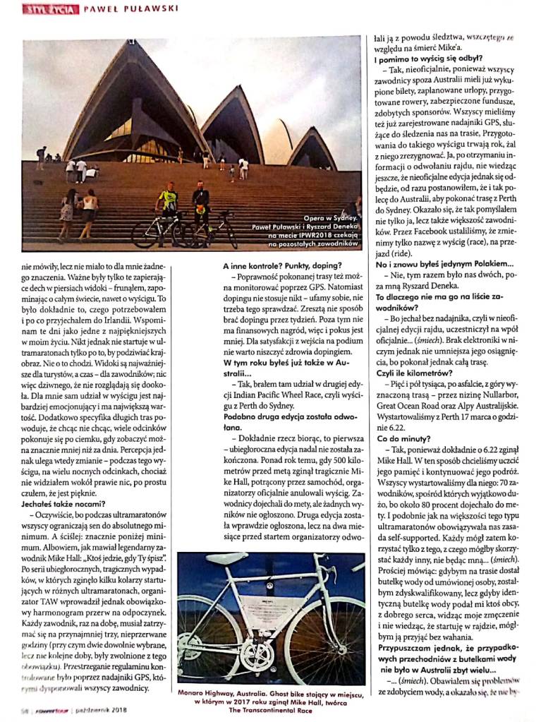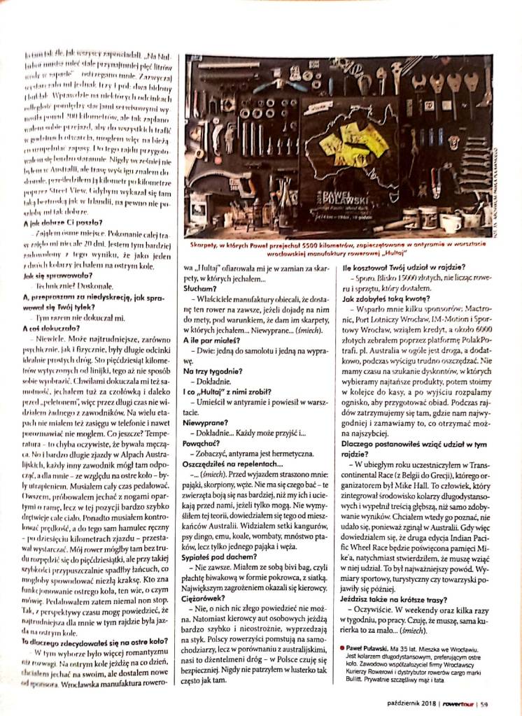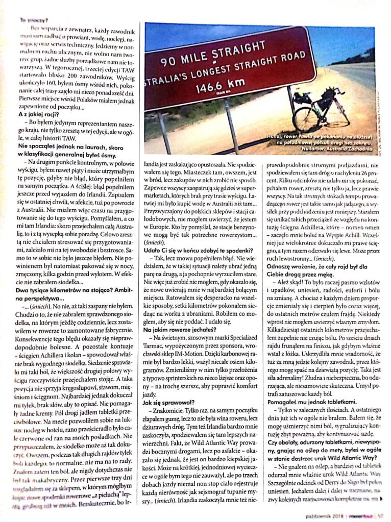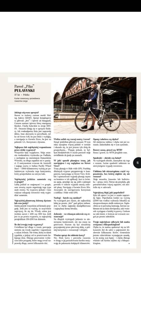 Wywiad dla nieistniejącego już https://www.rowertour.pl/ nr 10 / 2018 – Ktoś jedzie gdy Ty śpisz.